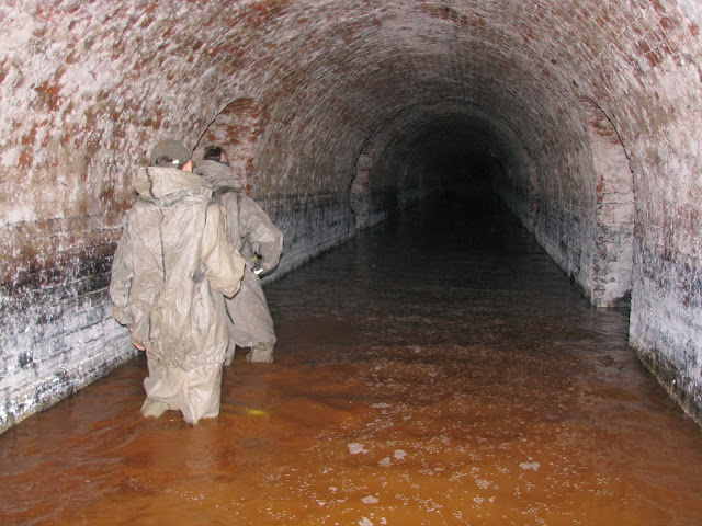Wyprawa do zalanego tunelu Fortu Gieorgija tuż przy Cytadeli Warszawskiej. Tunel jest totalnie zalany nie licząc kilku wystających wysepek piachu, a woda miejscami sięga aż po pas, no ale my jesteśmy do tego odpowiednio przygotowani =]
